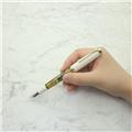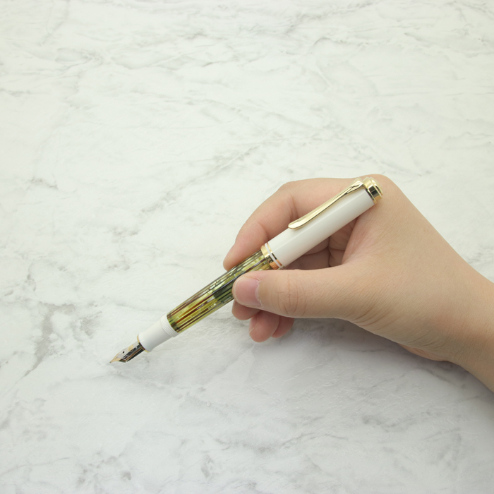 ペン先の腰が硬く、初めての人でも使いやすい。携帯性に優れ、ガシガシ書けて、リーズナブルな価格帯なので普段使いの万年筆として人気があります。ギフトにもオススメで、特にホワイトとゴールドの色合いがおしゃれなホワイトトートイスは女性へのギフトとしても喜ばれています。