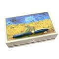 薄暗い空を飛び交うカラスと、頭を垂れて実る金色の麦畑のコントラストが印象的な名画の色彩を特製のマーブルレジンで表現しています。