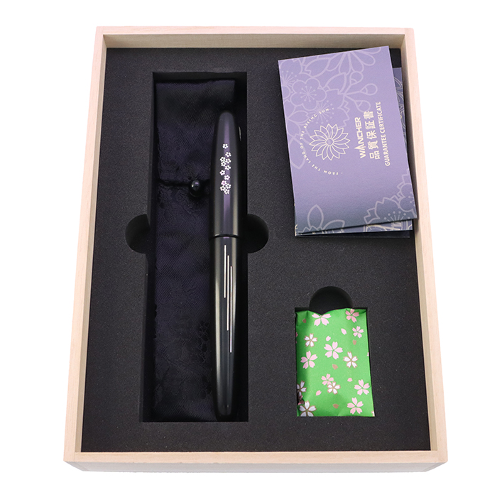 WANCHER ワンチャー 万年筆 ワンチャーオリジナル 象嵌 桜の川 漆 黒 中字 (ステンレスペン先)の通販・買取ならキングダムノート高級万年筆、限定万年筆、ボールペンなどを取り揃える新品・中古筆記具の通販・買取サイト