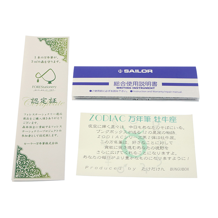 SAILOR セーラー 万年筆 ブングボックスオリジナル プロフェッショナルギア スリム ミニ ゾディアック 牡牛座 ミュージックの通販・買取ならキングダムノート高級万年筆、限定万年筆、ボールペンなどを取り揃える新品・中古筆記具の通販・買取サイト