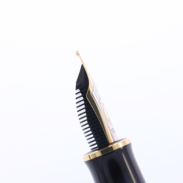 ペン先のサイズが8~10種類とそれぞれ特有の書き味とバランスが楽しめます。 18金または14金プラチナ装飾のペン先は滑らかな書き味で、 プロから初心者まで馴染みやすいのが人気の一つです。
