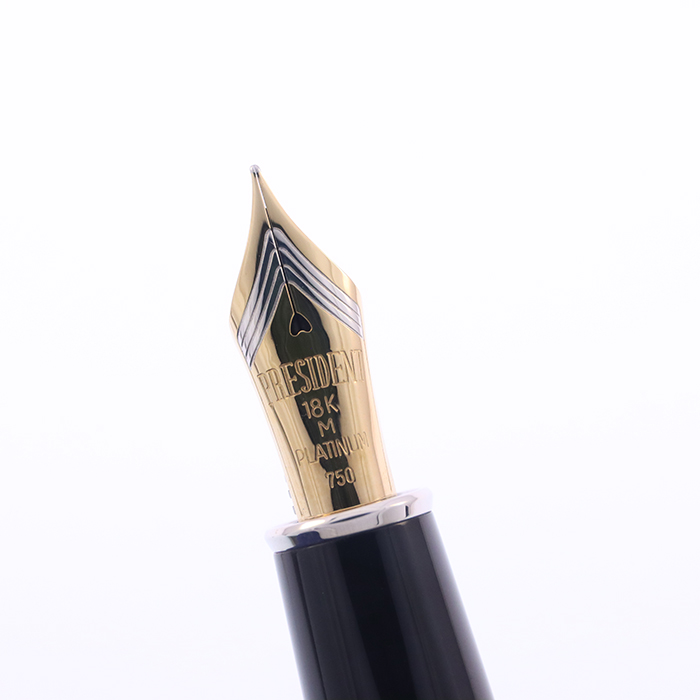 PLATINUM プラチナ 万年筆 プレジデント シルバートリム ブラック 中字の通販・買取ならキングダムノート高級万年筆、限定万年筆、ボールペンなどを取り揃える新品・中古筆記具の通販・買取サイト